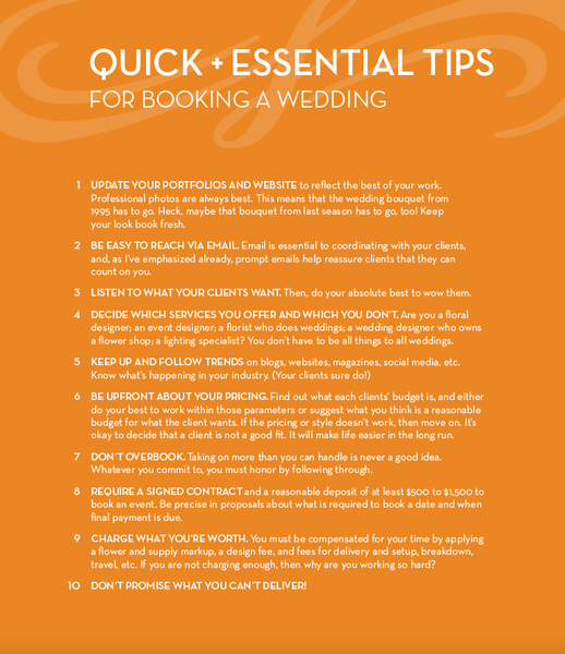 If you have the desire to perfect your wedding floral sales, business and customer-service skills, and to become more professional and profitable in this segment of the industry, this is the book for you!